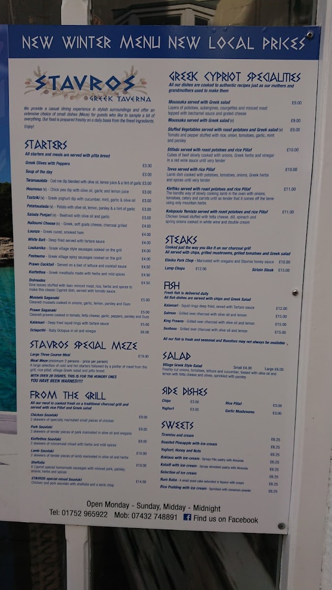 Tucked away on the charming cobbled streets of Plymouth’s historic Barbican, Stavros Greek Taverna at 37 Southside Street offers a dining experience that transports you straight to a seaside village in Greece. The Stavros Greek Taverna Menu is a celebration of traditional Greek flavors, executed with authenticity and passion, making it one of the most memorable Mediterranean eateries in the region.